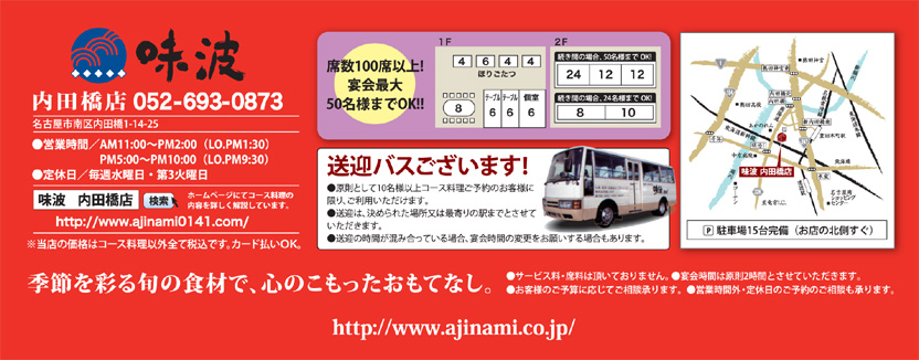 定休日 : 毎週火曜日(ただし、祝日の場合は営業)